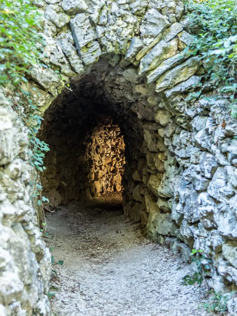 Once down on the road, you will see a small sign directing you to the right. Take a right and follow the road. The road will curve to the left and lead you to a large iron gate. This is the gate to the garden behind the castle.